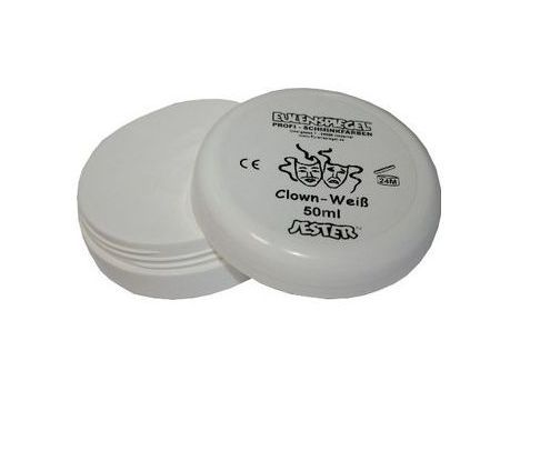 Nagy kiszerelésű fehér arcfesték (paszta, krémes textúra) bohócfestéshez (pantomimosoknak). Vízalapú, nagy fedőképességű, hosszan tartó, száradást követően nem mozdul el. Nincs szükség primer vagy egyéb alapozó használatára, azonnal az arcra kenhető nedves ecsettel vagy szivaccsal. Halloween vagy bármilyen fesztivál, ill. kreatív vagy művészi smink elkészítéséhez kitűnő választás.